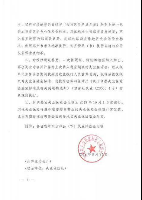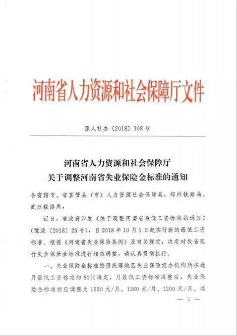 河南省人力资源和社会保障厅关于调整河南省失业保险金标准的通知